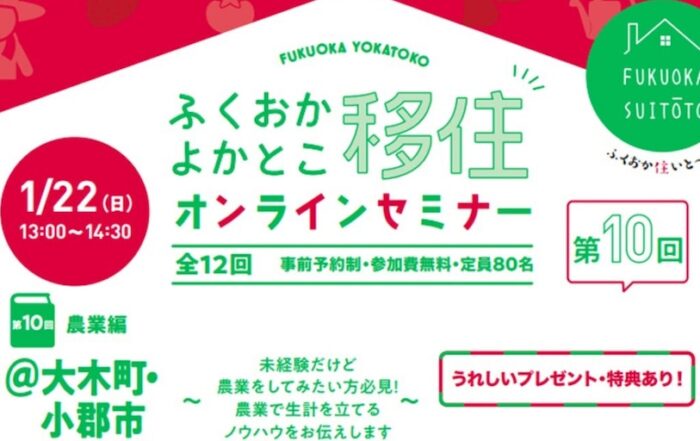 福岡県2022-12-23T17:10:24+09:00『ふくおかよかとこ移住オンラインセミナー2022 vol.10 #農業編』~未経験だけど農業をしてみたい方必見!農業で生計を立てるノウハウをお伝えします~By 福岡県|2022-12-23T17:10:24+09:002022.12.22|