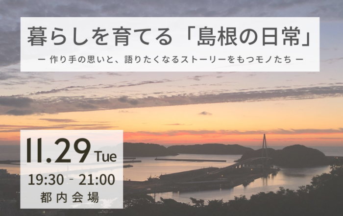 【島根県】しまね移住project2022-11-14T17:55:15+09:00暮らしを育てる『島根の日常』- 作り手の思いと、語りたくなるストーリーのあるモノたち –By 【島根県】しまね移住project|2022-11-14T17:55:15+09:002022.11.14|