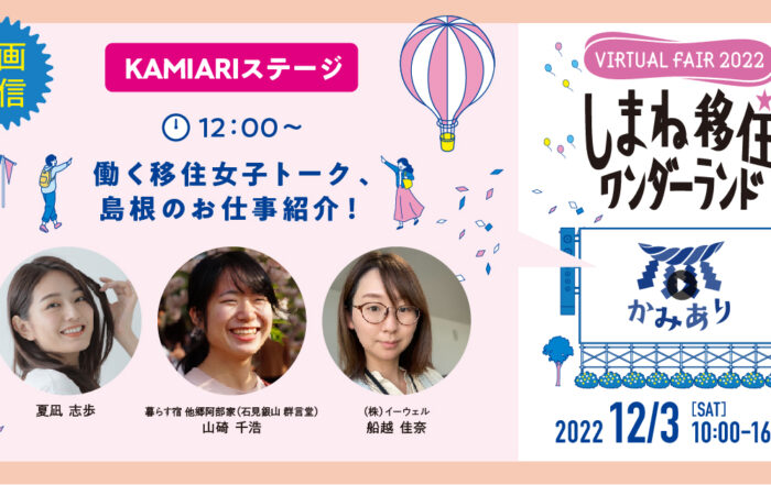 【島根県】しまね移住project2022-11-11T18:11:42+09:00「働く移住女子トーク、島根のお仕事紹介!」By 【島根県】しまね移住project|2022-11-11T18:11:42+09:002022.11.11|