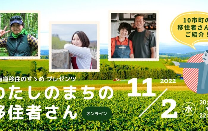 一般財団法人しもかわ地域振興機構2024-12-13T15:30:41+09:00[開催終了]【11/2(wed)】移住のきっかけは何?移住先でどんな暮らしをしてるの??北海道各地の移住先輩のリアル情報を知れるオンラインイベント開催!By 一般財団法人しもかわ地域振興機構|2024-12-13T15:30:41+09:002022.10.24|