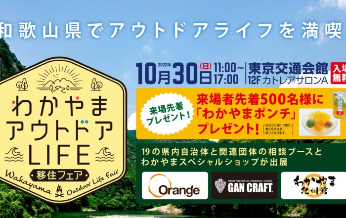 わかやまキャリアチェンジ応援プロジェクト2022-10-26T06:30:29+09:00【10/30 (日)・東京開催】“和歌山県単独の移住フェア”を3年ぶりにリアル開催!19市町等の相談ブース、「アウトドア」をテーマにしたイベントも!By わかやまキャリアチェンジ応援プロジェクト|2022-10-26T06:30:29+09:002022.10.13|