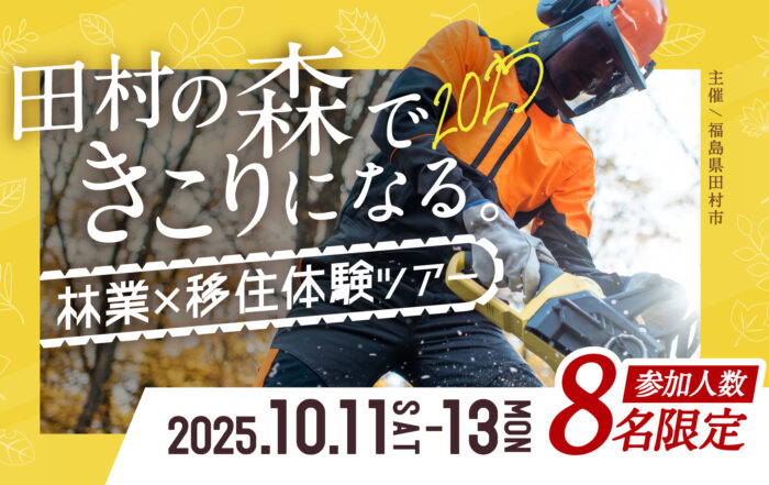 福島県田村市2025-08-12T12:56:50+09:00田村の森できこりになる。2025 林業×移住体験ツアー ~“働く”と“暮らす”のリアルを体感する2泊3日~By 福島県田村市|2025-08-12T12:56:50+09:002025.08.12|
