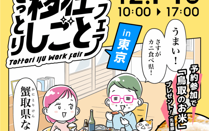 鳥取県2025-12-02T11:42:49+09:0012/14(日)とっとり移住・しごとフェアin東京【県最大級の移住・就職イベント】By 鳥取県|2025-12-02T11:42:49+09:002025.12.02|