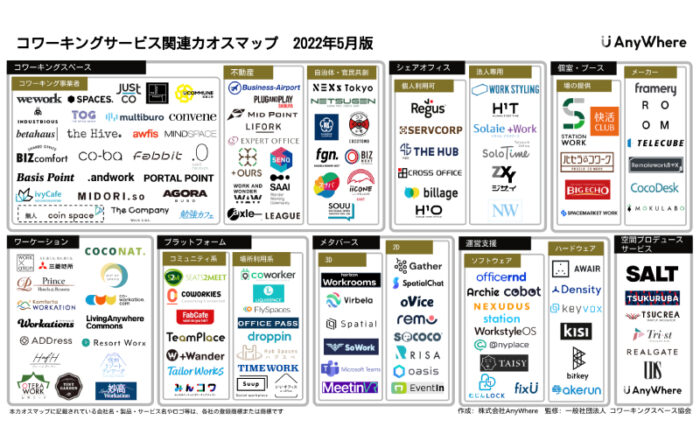 Nativ.media編集部2022-06-08T19:06:50+09:00国内外のワークプレイス関連サービスをマッピング『世界のコワーキングサービス カオスマップ 2022年5月版』を公開By Nativ.media編集部|2022-06-08T19:06:50+09:002022.06.09|