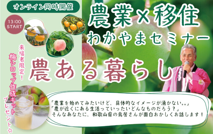 わかやまキャリアチェンジ応援プロジェクト2022-06-10T21:28:31+09:00【6/25(sat)東京&オンライン開催】移住×農業 わかやまセミナー/農ある暮らし~入門編~By わかやまキャリアチェンジ応援プロジェクト|2022-06-10T21:28:31+09:002022.06.09|