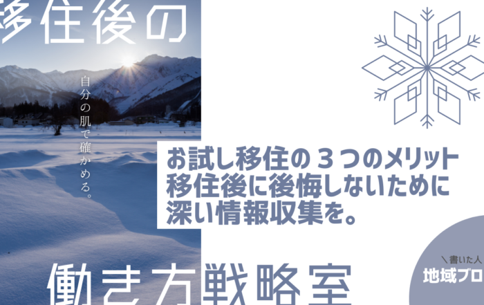 コバヤシ|移住後の働き方戦略室2022-05-27T17:25:16+09:00お試し移住の3つのメリット。移住後に後悔しないために深い情報収集を。By コバヤシ|移住後の働き方戦略室|2022-05-27T17:25:16+09:002022.05.27|