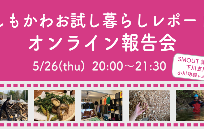 一般財団法人しもかわ地域振興機構2024-12-13T15:49:37+09:00[開催終了]【5/26オンラインイベント】現役大学生が北海道の田舎暮らしのリアルをお伝えします!By 一般財団法人しもかわ地域振興機構|2024-12-13T15:49:37+09:002022.05.19|