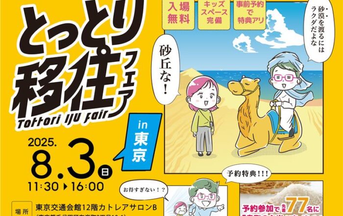 鳥取県2025-07-24T09:36:32+09:00鳥取県”最大級”の移住イベント『とっとり移住フェアin東京』開催!By 鳥取県|2025-07-24T09:36:32+09:002025.07.24|