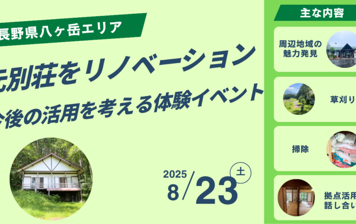 地域推し活プロジェクト 山梨チーム2025-07-23T20:32:56+09:00【イベント開催】八ヶ岳の元別荘のリノベーションイベントを実施します!│ 2025年8月23日(土)By 地域推し活プロジェクト 山梨チーム|2025-07-23T20:32:56+09:002025.07.23|