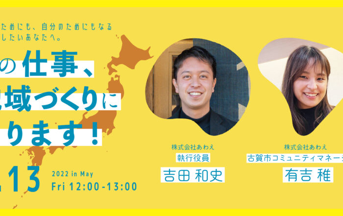 株式会社あわえ2022-04-15T22:00:37+09:00田舎暮らしは甘くない?!移住の前に知っておきたい、地域づくりに関わる仕事とは?By 株式会社あわえ|2022-04-15T22:00:37+09:002022.04.13|