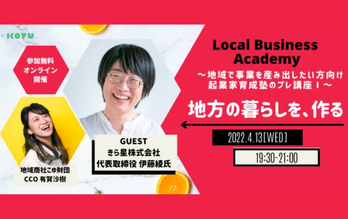 ありがさき@2拠点ポッドキャスター2022-04-14T21:33:58+09:00地域で新規事業を生み出す起業型人財育成塾「宮崎ローカルビジネスアカデミー」 開講決定!By ありがさき@2拠点ポッドキャスター|2022-04-14T21:33:58+09:002022.04.07|