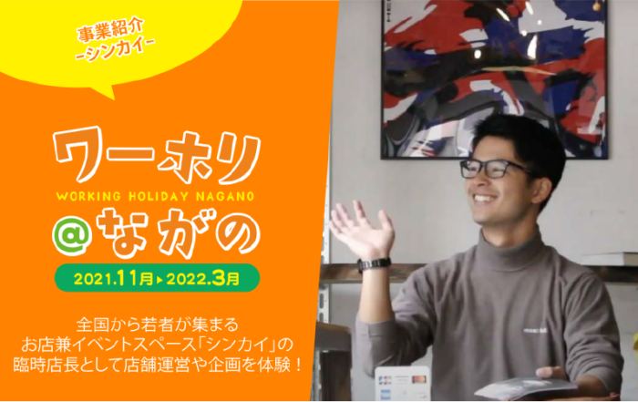 ワーホリ@ながの2021-12-07T12:15:37+09:00【ワーホリ@長野】全国から若者が集まるお店兼イベントスペース「シンカイ」の臨時店長として店舗運営や企画を体験 !By ワーホリ@ながの|2021-12-07T12:15:37+09:002021.12.01|