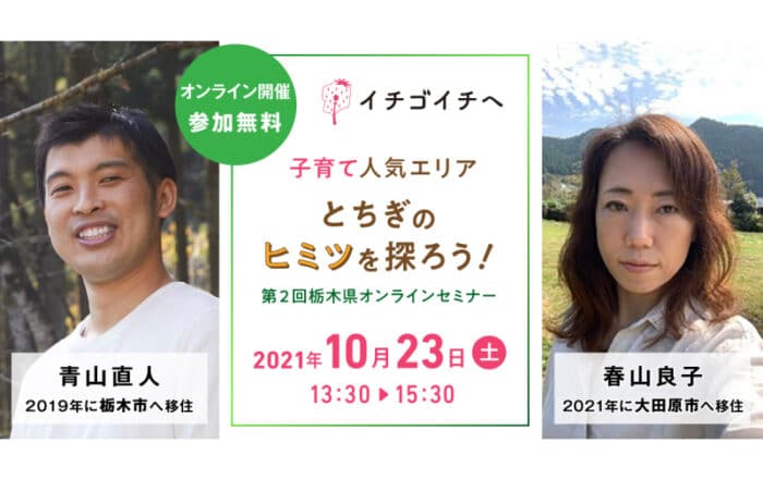 Nativ.media編集部2021-10-17T20:51:20+09:00移住なら栃木県がおすすめ!「子育て人気エリアとちぎのヒミツを探ろう!」オンラインセミナー開催By Nativ.media編集部|2021-10-17T20:51:20+09:002021.10.17|