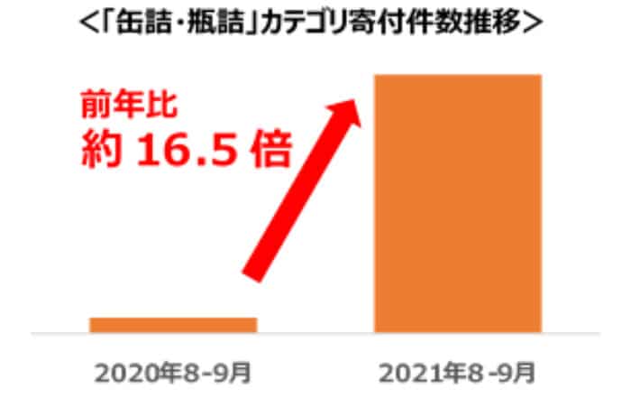 Nativ.media編集部2021-10-10T16:49:56+09:00「缶詰・瓶詰」お礼品の寄付件数が前年同期比約16.5倍にBy Nativ.media編集部|2021-10-10T16:49:56+09:002021.10.09|