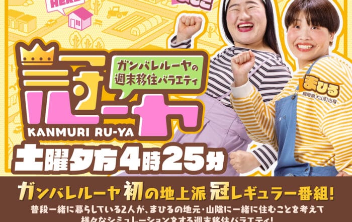 鳥取県2021-05-25T18:19:49+09:00【5/15(土)スタート!!】ガンバレルーヤ初の地上波冠レギュラー番組「ガンバレルーヤの週末移住バラエティ 冠ルーヤ」がいよいよ放送開始!By 鳥取県|2021-05-25T18:19:49+09:002021.05.14|