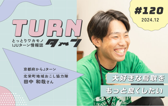 鳥取県2024-12-03T13:31:18+09:00【トットリワカモノIJUターン情報誌ターン(Turn)】「Turn#120」京都府からJターン/田中さんBy 鳥取県|2024-12-03T13:31:18+09:002024.12.03|