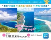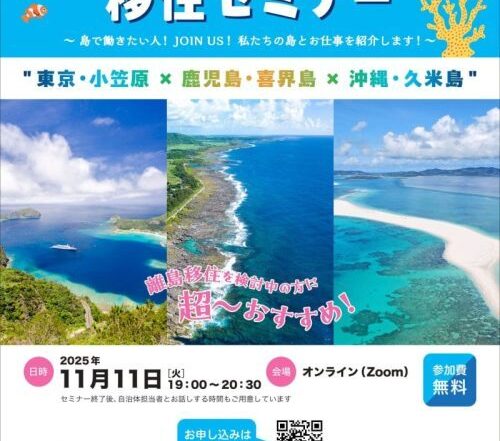 東京たましま移住定住情報2025-10-20T11:04:50+09:00\離島好きに超おすすめ!/東京・小笠原✕鹿児島・喜界島✕沖縄・久米島 第一回島々オンライン移住セミナーBy 東京たましま移住定住情報|2025-10-20T11:04:50+09:002025.10.20|
