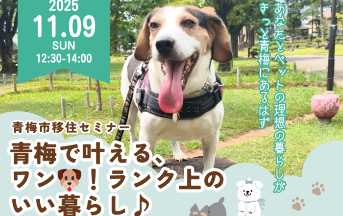 東京たましま移住定住情報2025-10-20T11:04:12+09:00青梅で叶える、ワン!ランク上のいい暮らし♪~あなたとペットの理想の暮らしがきっと青梅にあるはず~By 東京たましま移住定住情報|2025-10-20T11:04:12+09:002025.10.20|