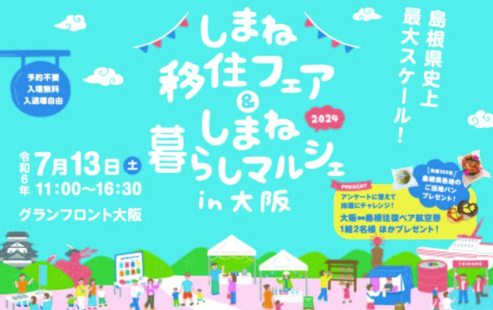 【島根県】しまね移住project2024-06-19T16:37:33+09:001日限りのビッグイベント!しまね移住フェア&しまね暮らしマルシェ in 大阪開催!By 【島根県】しまね移住project|2024-06-19T16:37:33+09:002024.06.21|