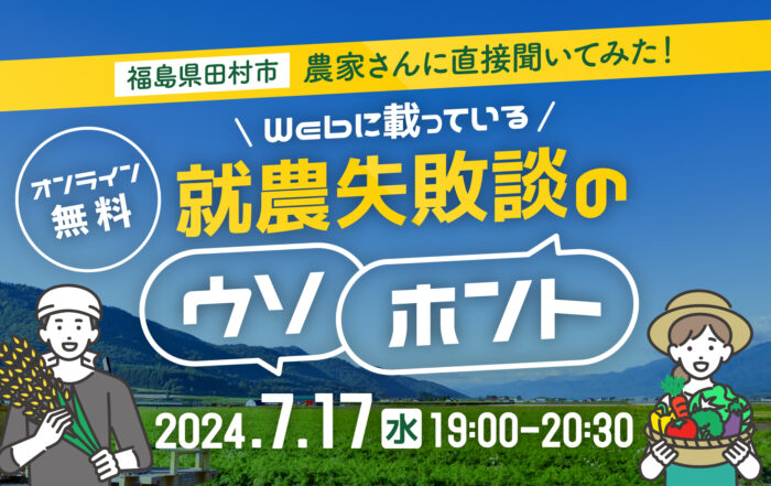 福島県田村市2024-06-10T14:54:52+09:00【福島県田村市】農家さんに直接聞いてみた!webに載ってる就農失敗談のウソ・ホントBy 福島県田村市|2024-06-10T14:54:52+09:002024.06.10|