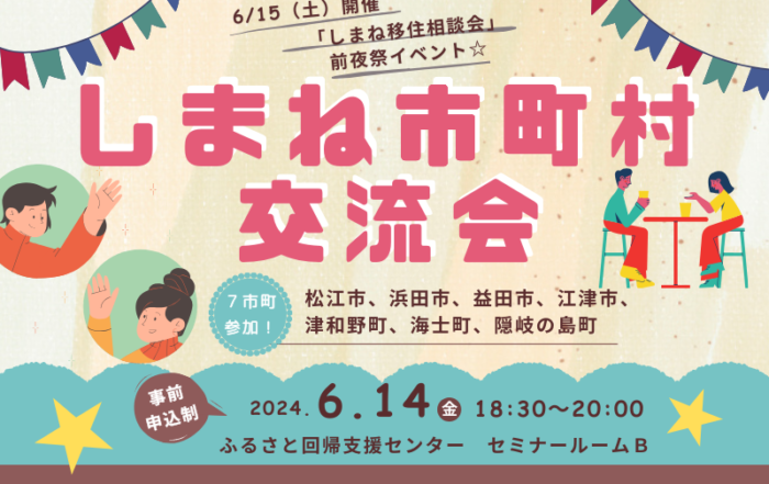 【島根県】しまね移住project2024-09-11T14:38:53+09:00島根の6市町と東京で出会う!つながる交流会By 【島根県】しまね移住project|2024-09-11T14:38:53+09:002024.05.24|