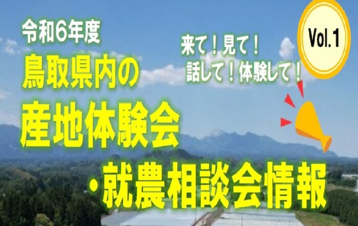 鳥取県2024-06-13T10:15:37+09:00【参加者募集中(6・7月開催分)】鳥取県でLet’s農業!来て!見て!話して!体験して!産地体験会・就農相談会に出かけよう!By 鳥取県|2024-06-13T10:15:37+09:002024.05.21|