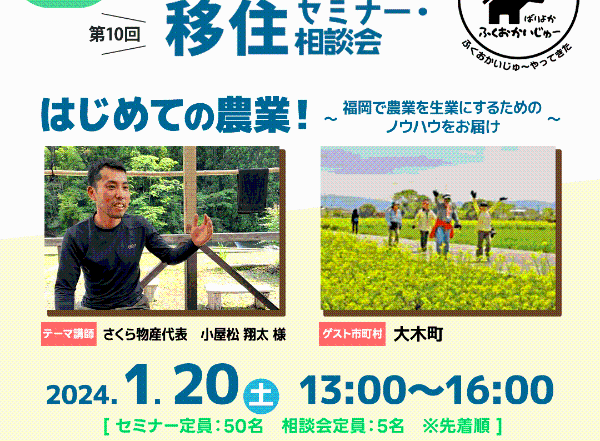 福岡県2023-12-28T17:53:20+09:001/20(土)開催!『ふくおかよかとこ移住セミナー&相談会2023vol.10』 #はじめての農業!~福岡で農業を生業にするためのノウハウをお届け~By 福岡県|2023-12-28T17:53:20+09:002023.12.28|