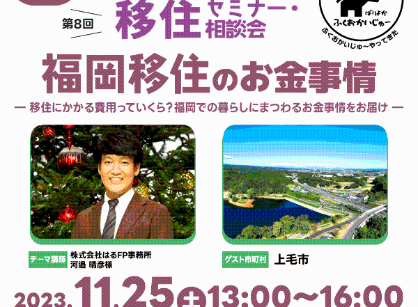 福岡県2023-11-09T09:09:51+09:0011/25(土)開催!『ふくおかよかとこ移住セミナー&相談会2023vol.8』 #福岡移住のお金事情~移住にかかる費用っていくら?福岡での暮らしにまつわるお金事情をお届け~By 福岡県|2023-11-09T09:09:51+09:002023.11.09|