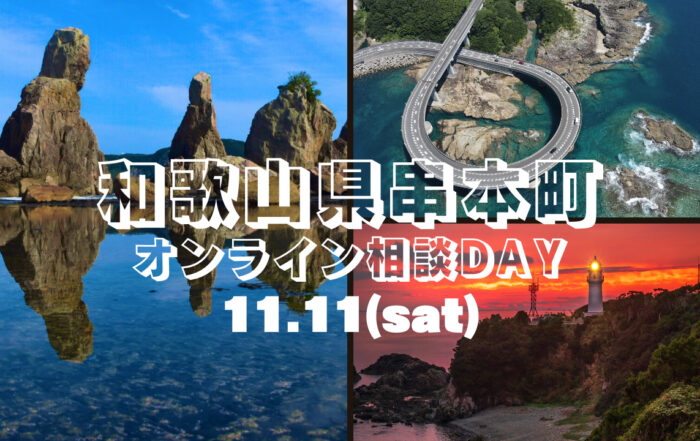わかやまキャリアチェンジ応援プロジェクト2023-10-12T17:13:31+09:00本州最南端に位置する常春の町・串本町「オンライン移住相談」開催!11月11日(土)10:00~17:00By わかやまキャリアチェンジ応援プロジェクト|2023-10-12T17:13:31+09:002023.10.12|