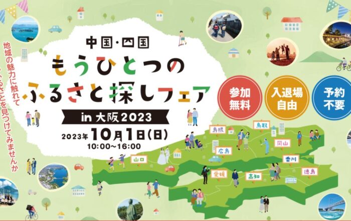 鳥取県2023-09-18T19:30:20+09:00【10/1(日)大阪開催】中国・四国地方の移住担当者が集結!【もうひとつのふるさと探しフェア】 in 大阪2023を開催します!By 鳥取県|2023-09-18T19:30:20+09:002023.09.08|