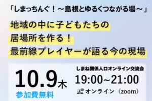 【島根との関わりは自分次第!】10/22(火)開催 あなたと地域をつなぐオンライン交流イベント「...
