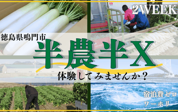 徳島県 鳴門市2025-12-19T11:38:45+09:00【徳島県鳴門市】宿泊費ゼロで2週間のお試し暮らし!潮風感じる海辺で特産品「青首だいこん」の農業バイト体験してみませんか?徳島県 鳴門市2025-12-19T11:38:45+09:002025.12.19|