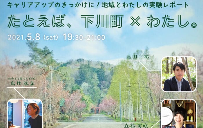 一般財団法人しもかわ地域振興機構2025-01-07T15:08:29+09:00[開催終了]【オンラインイベント】キャリアアップのきっかけに!地域とわたしの実験レポート【5/8 開催】一般財団法人しもかわ地域振興機構2025-01-07T15:08:29+09:002021.05.06|