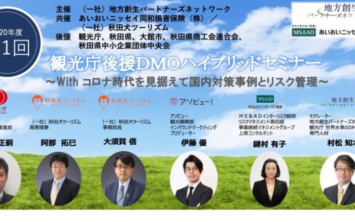 地方創生パートナーズ ネットワーク2020-12-04T18:40:57+09:00【第1回】観光庁後援DMOハイブリッドセミナー~With コロナ時代を見据えて国内対策事例とリスク管理~地方創生パートナーズ ネットワーク2020-12-04T18:40:57+09:002020.11.17|